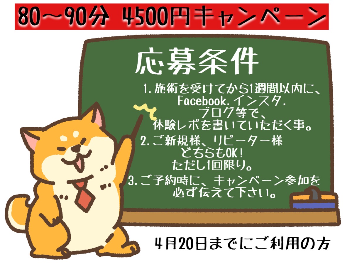 60分*¥4500コース始めました。